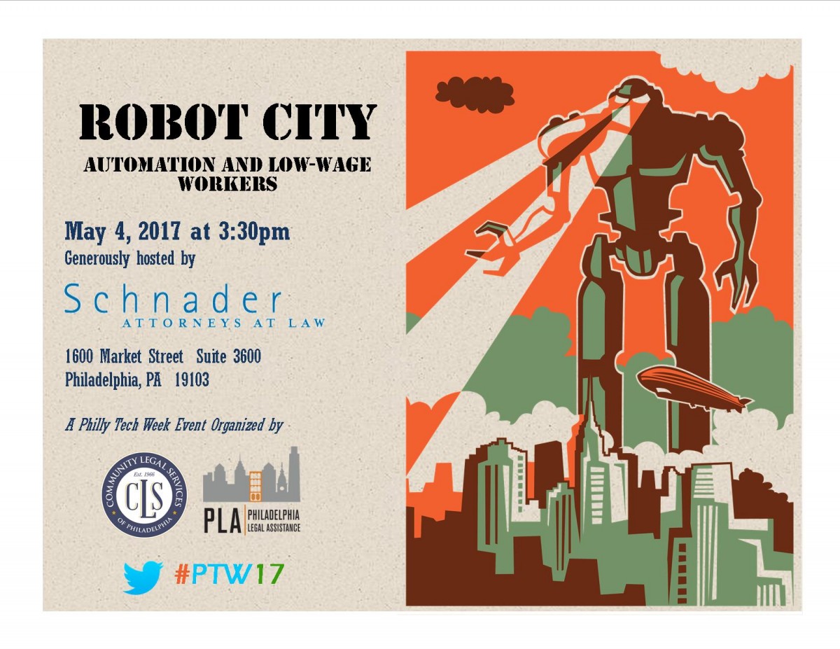 Large numbers of Philadelphia's workers depend on jobs that seem likely to face pressure from automation. This panel will explore perspectives on the impact of automation and AI on Philadelphia's low-income communities and on what steps we can take to make our automated future better for all Philadelphians. Join us to learn about the ways that local policymakers, advocates, and the business community can prepare for these coming changes.