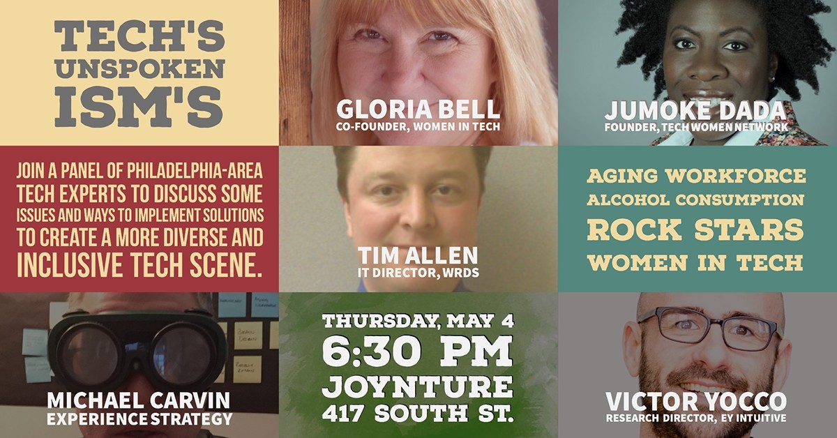 Tech communities often talk about creating a diverse and inclusive culture. However, more often than not, it remains just talk. Join a panel of Philadelphia-area tech experts to discuss some issues and ways to implement solutions to create a more diverse and inclusive tech scene. We will cover topics including: an aging workforce, promoting alcohol consumption, the myth of the rock star developer, and women working in tech. Our hope is to create a dialogue that will extend beyond the panel and into the broader Philly tech community. Let's work towards replacing tech culture's negative ISMs with a positive one: altruism.